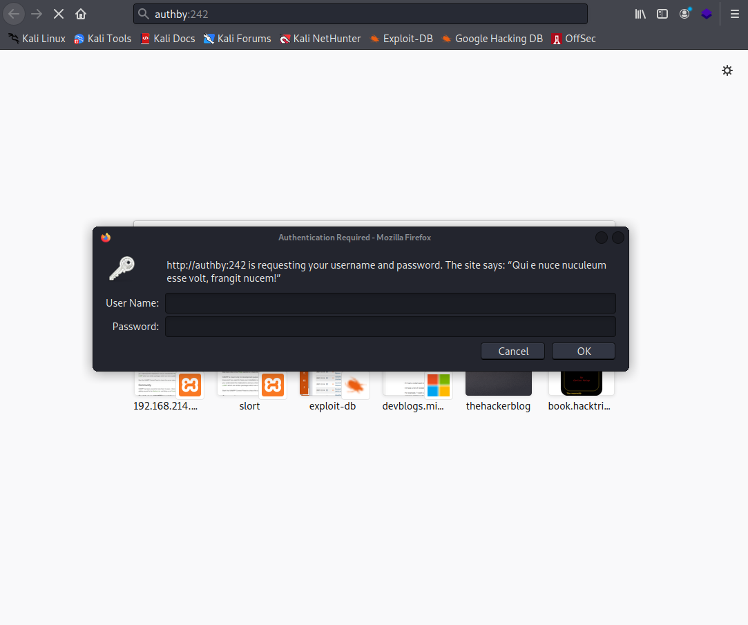 offsecuser in.htpasswd. - Log into authby:242 with creds.
