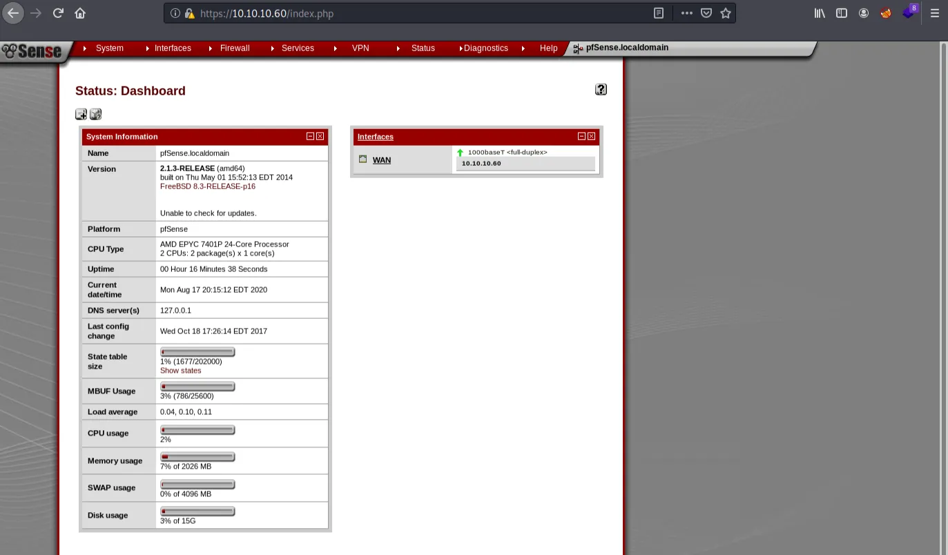 Armed with this knowledge, we can go do some good, old fashioned Googling to find a blog post detailing 3 exploits affecting this version of PFSense. Reading this, there is only one location of the web server we can manipulate: an exploit that will give access via the RRD Graph. We can use the an exploit from searchsploit to hopefully give us a shell.